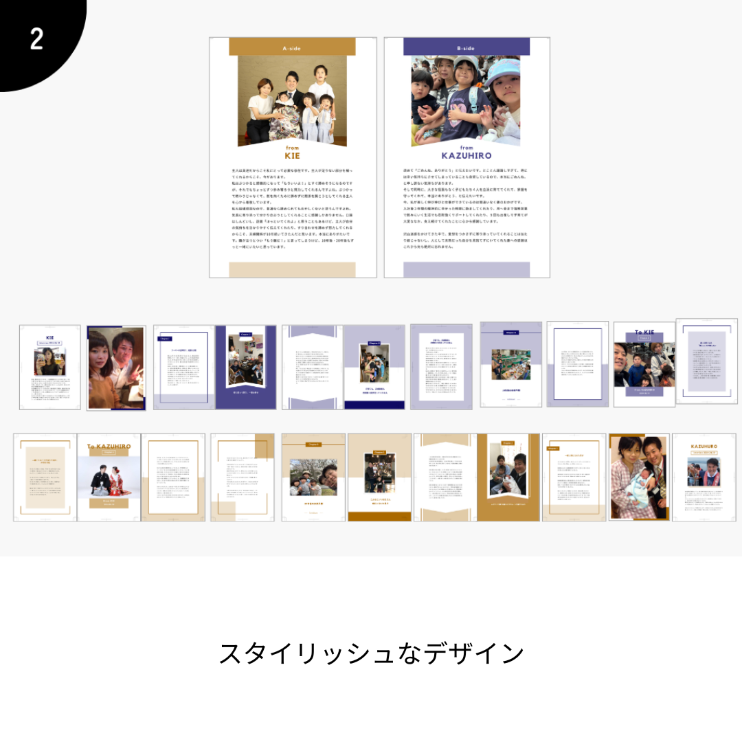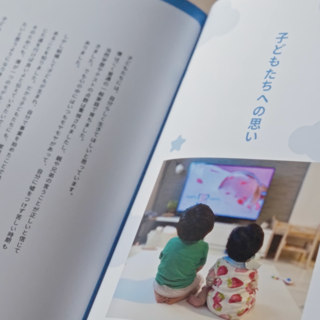お一人ずつ別々にインタビューを行い、両開きの1冊の本をおつくりします。